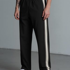 Mens Casual Sweatpants Lightweight Pants Drawstring Waist Workout Striped