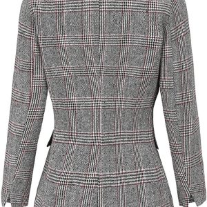 Women Notch Lapel 2 Button Boyfriend Blazer Suit Houndstooth Plaid Jacket Coat