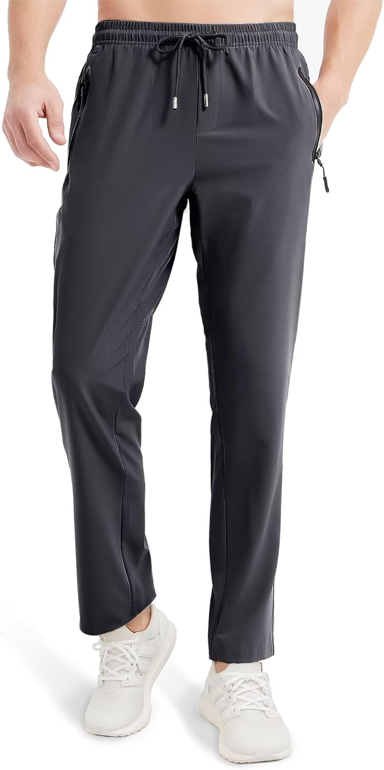 - Lightweight, 4-way stretch, quick dry, breathable, moisture-wicking, elastic waist with drawstring, 2 zipper pockets workout pants